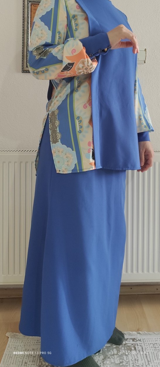 Uzun Mavi Kadın özel tasarım etek gömlek