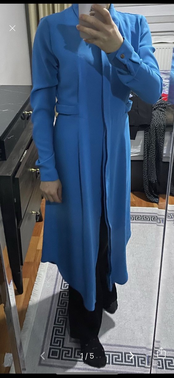 Uzun mavi kadın palto, kesimli yaka ve drapeli tasarıma sahiptir. Uzun kollu, rahat kesim, yumuşak ve sıcak kumaştan, iş ve günlük kullanıma uygundur. Mükemmel bi tunik dar gelmese asla satmam 48 kiloya kadar tam olur