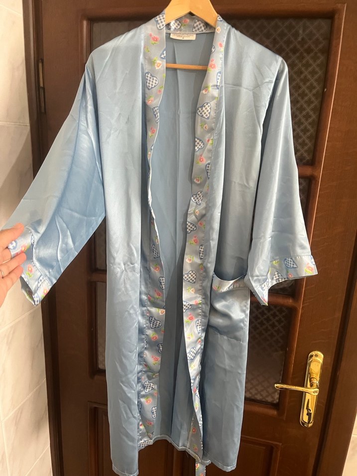 Uzun Mavi Vintage Bohem Kadın Sabahlık saten ipek