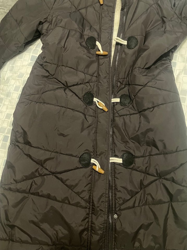 Xl beden T box marka Sıkıntısız ürün Düğmeli ve fermuarlı, kahverengi, sentetik kumaştan yapılmış, normal uzunlukta midi kadın kışlık ceket. Strappy kollu, notched yaka ile günlük kullanıma uygun.