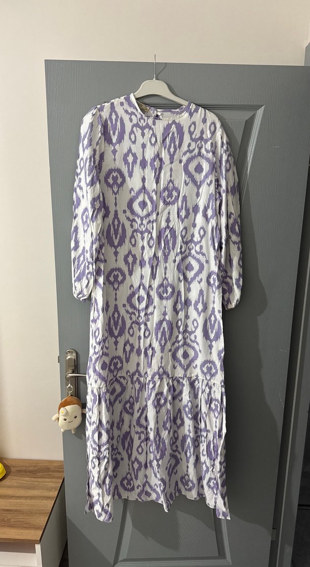 Uzun Mor Batik Desenli Salaş Elbise