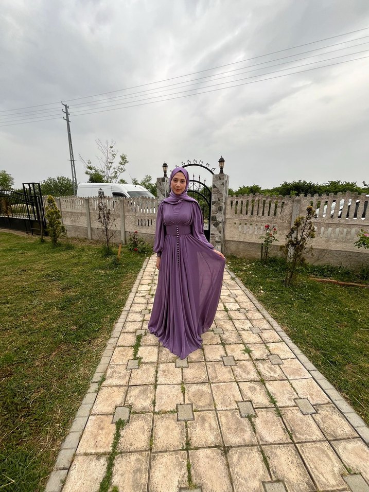 Uzun Mor Bohem Drapeli Abiye Elbise