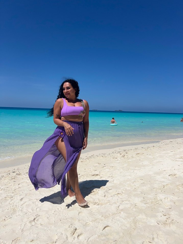 Bohem tarzda, uzun ve dökümlü mor kadın pareo aynı kumaştan straplez üstü ve istenirse kollukları da vardır ben sadece etek olarak kullanmayı tercih ettim .