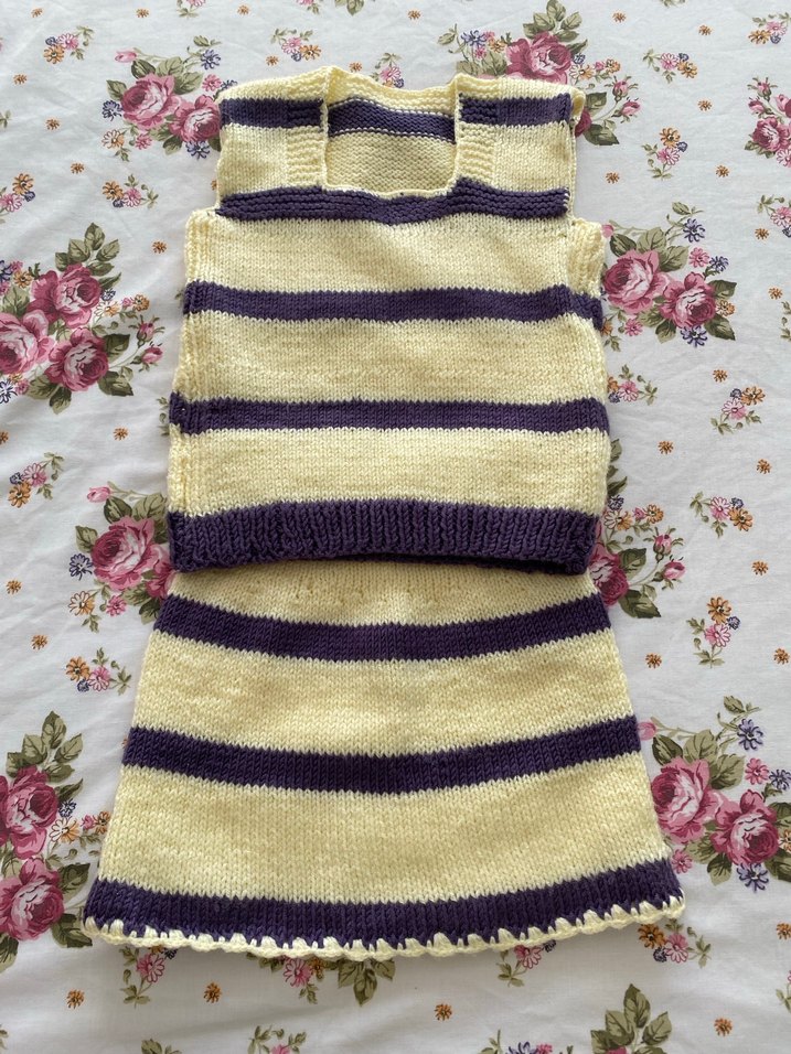 Uzun Mor Çizgili Triko Süveter ve Etek Takımı