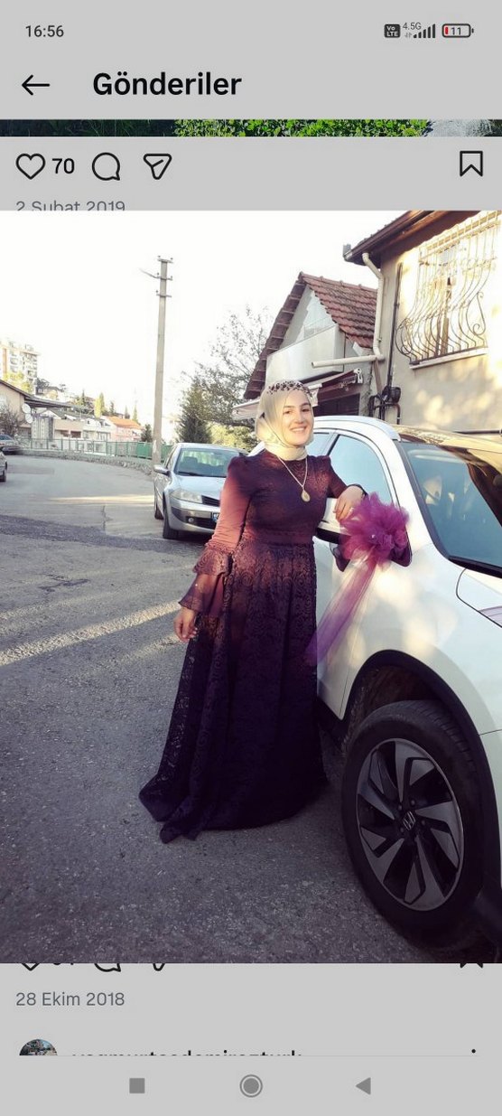 Uzun, mor renkli, bol kesim dantel detaylı elbise. Yalnızca bir defa düğünde giyildi yeni gibidir.