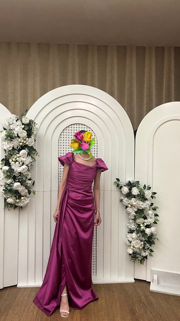 Uzun Mor Drapeli Kadın Abiye Elbise