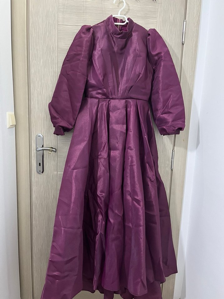 Uzun Mor Drapeli Kadın Abiye Elbise
