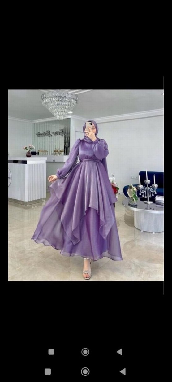 Uzun Mor Drapeli Tesettür Abiye Elbise (Satılık) Şal dahildir