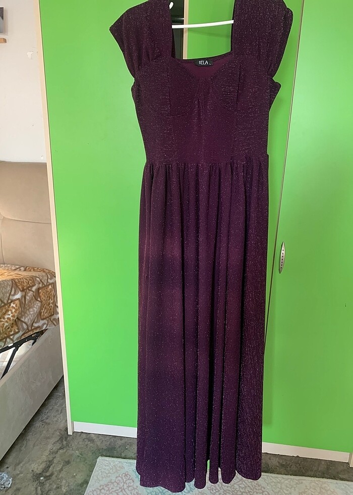 Uzun mor ışıltılı elbise