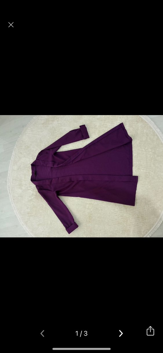 Uzun mor kadın blazerregular fit, uzun kollu ve kesik yaka detaylıdır. Düğmeli ve sade tasarıma sahip, günlük kullanım için uygundur.