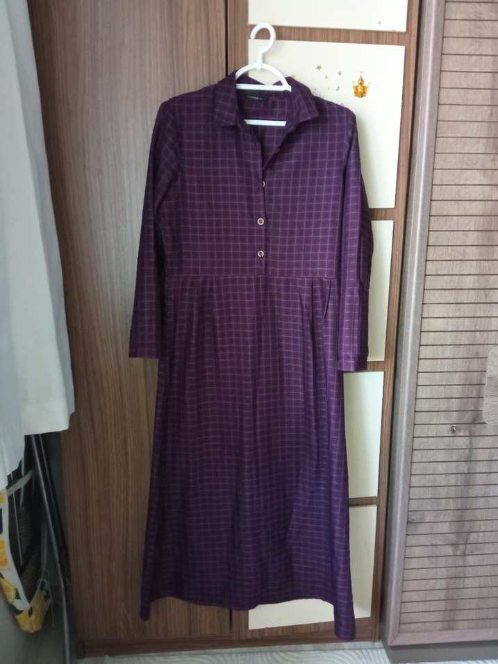Uzun Mor Kadın Elbise Düğmeli ve Uzun Kollu