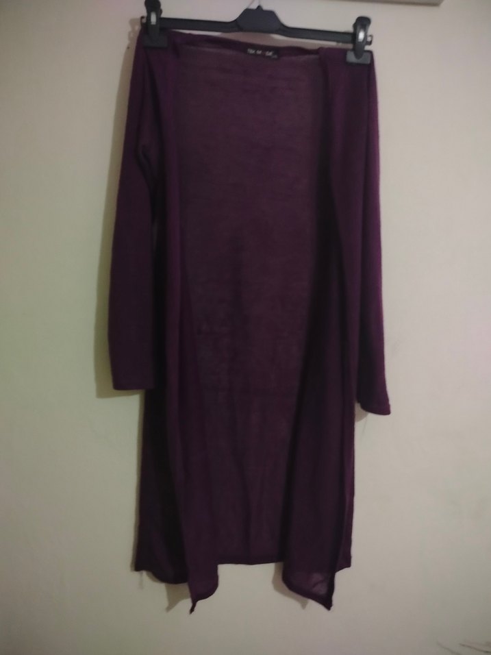 Uzun mor renkli bu kadın hırka, uzun kollu ve bol kesimdir. Drapeli tasarımı ve yuvarlak yakası vardır. İpeksi kumaştan, rahat ve gotik tarzda günlük kullanıma uygundur.