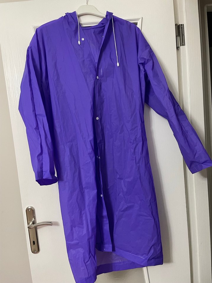 Uzun Mor Kadın Yağmurluk Düğmeli