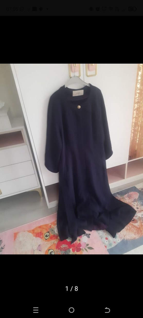 Uzun, mor renkte, bol kesim ve uzun kollu gotik tarzda sade ve desensiz kadın öndrn gizli düğmeli dış giyim kap. Gotik moda sevenler için uygundur. kayra marka son iki fotoğrafta çok belli olmayan yerde defo var ondan dolayı uygun verecem.