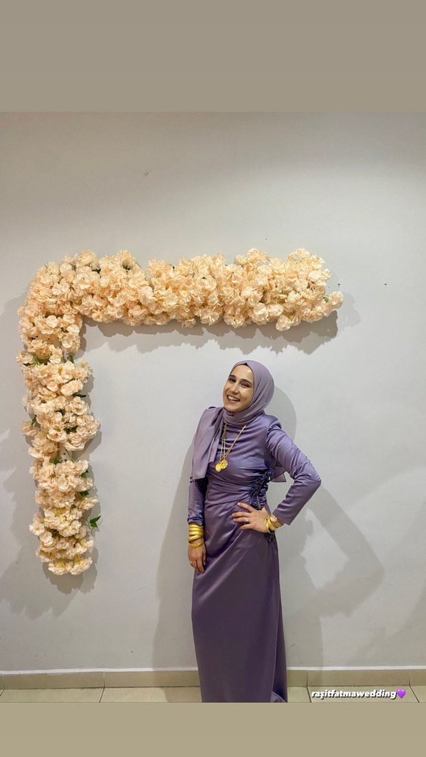 Uzun mor abiye elbise, yüksek yakalı ve uzun kolludur. Etnik desenli, regular fit ve drapeli, tesettür ve düğün için uygundur.