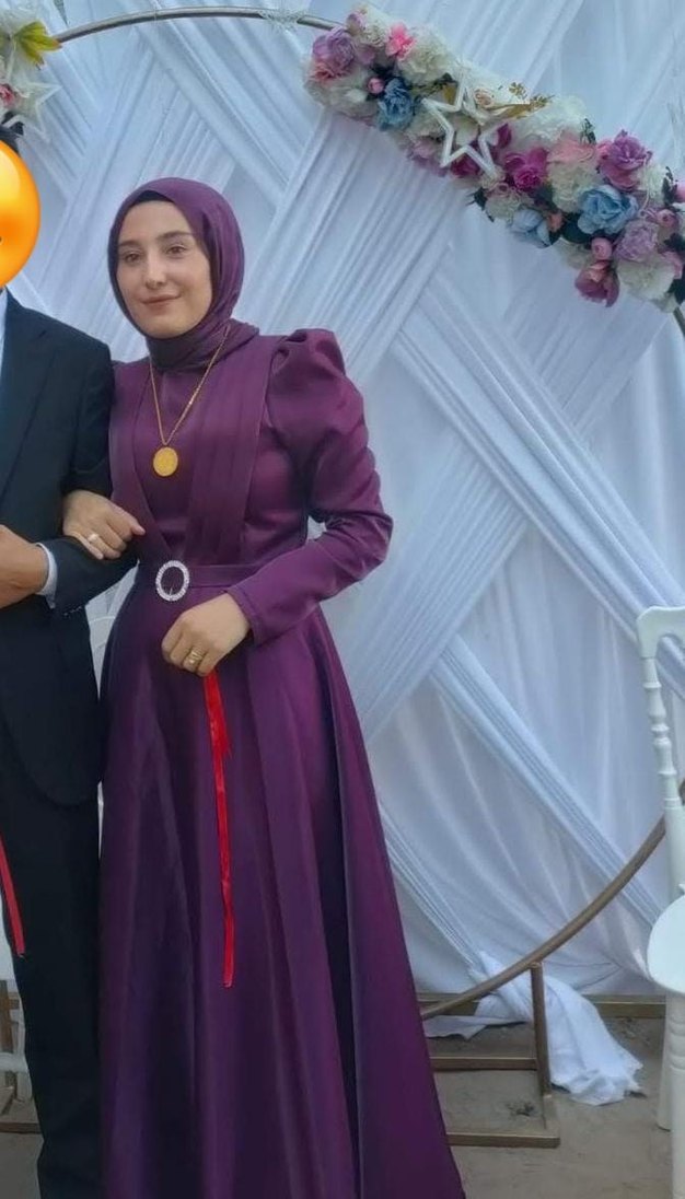 Uzun mor renkli tesettür abiye elbise, yüksek yakalı ve uzun kolludur. Drapeli tasarımı ve etnik desen detaylarıyla düğünlerde kullanıma uygundur.