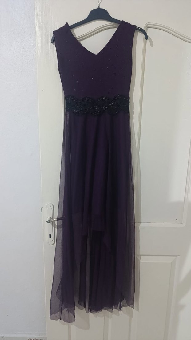 Uzun Mor V Yaka Gotik Abiye Elbise