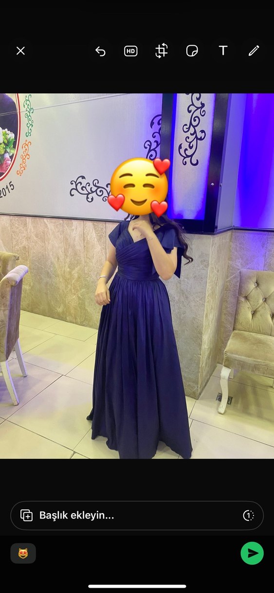 Uzun mor renkte, V yakalı, ince askılı ve drapeli tasarıma sahip gotik tarzda, fit kesim abiye elbise. Hafif batik deseniyle dikkat çeker. Fiyatta yardımcı olurum. Boy:1,66 Kilo:60