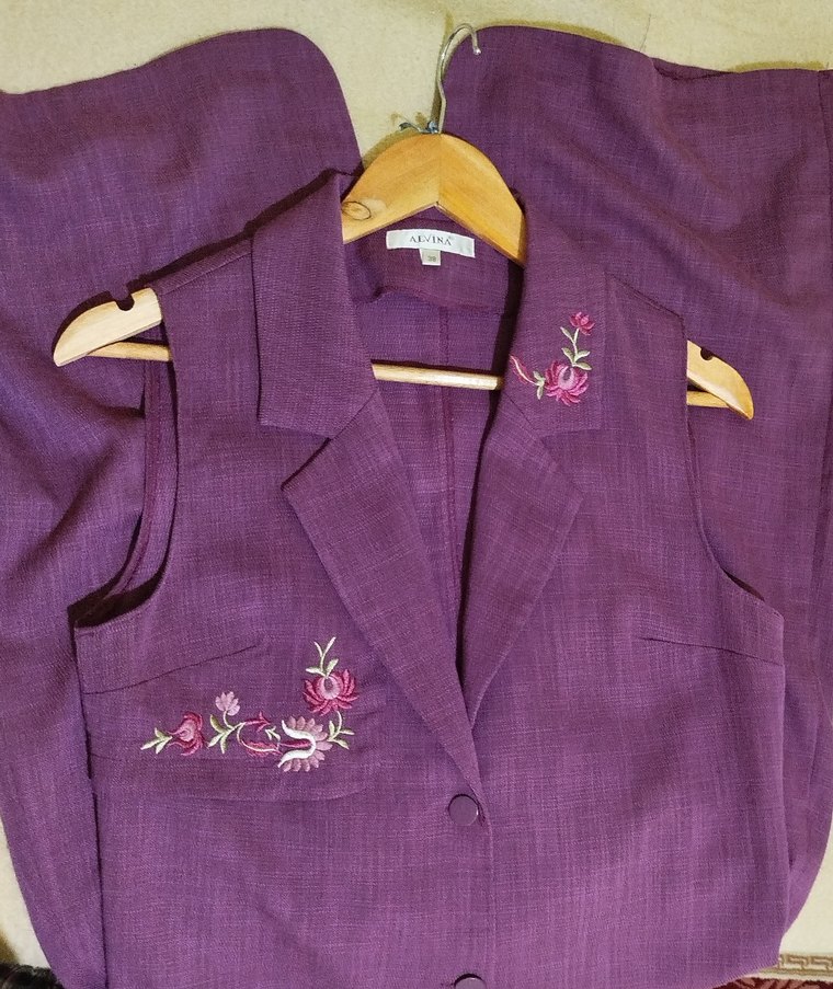 Hiç kullanılmadı. Uzun, mürdüm renkli, düğmeli ve nakış detaylı, yakalı, kolsuz kadın yelek. Yumuşak ve parlak kumaştan üretilmiş, bohem tarz için uygun. #tesettür #yelek #zara #alvina #giyim .