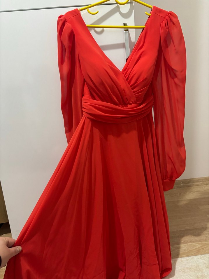 Uzun Nar Çiçeği Drapeli Kadın Abiye Elbise