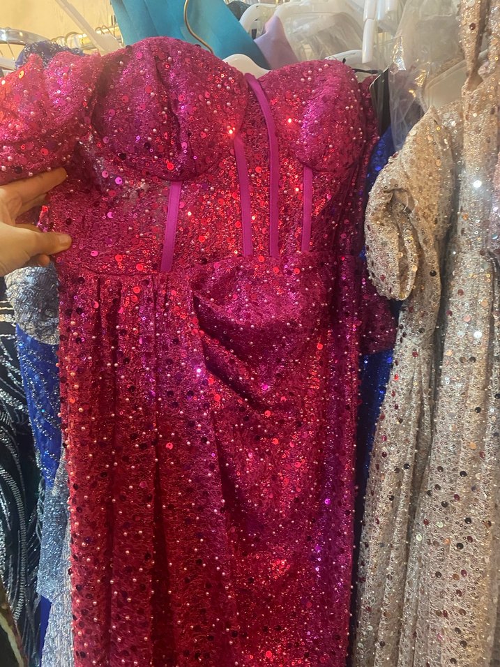 Fitted kesim, straplez parlak abiye 3 renk seçeneği mevcuttur 36-38-40 bedenler mevcuttur