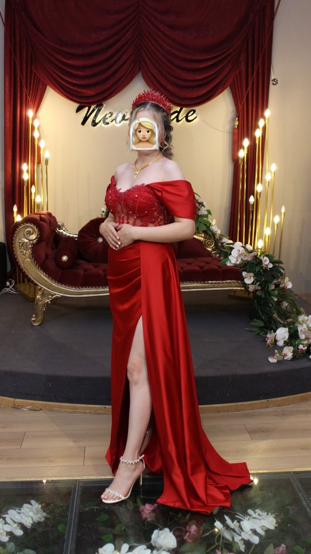 Uzun Parlak Kırmızı Kına Elbisesi