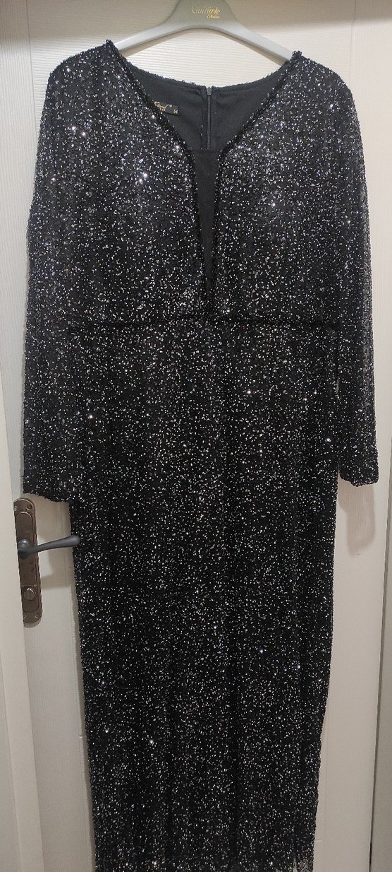 Uzun Parlak Siyah Kadın Abiye Elbise 54 beden