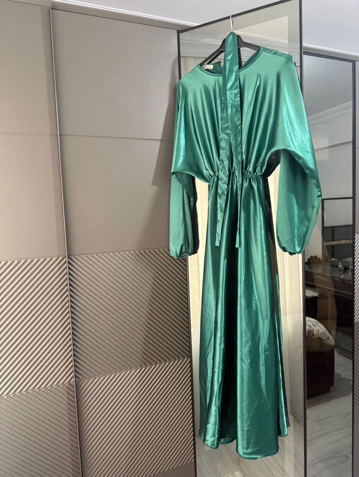 Uzun Parlak Yeşil Kadın Elbise
