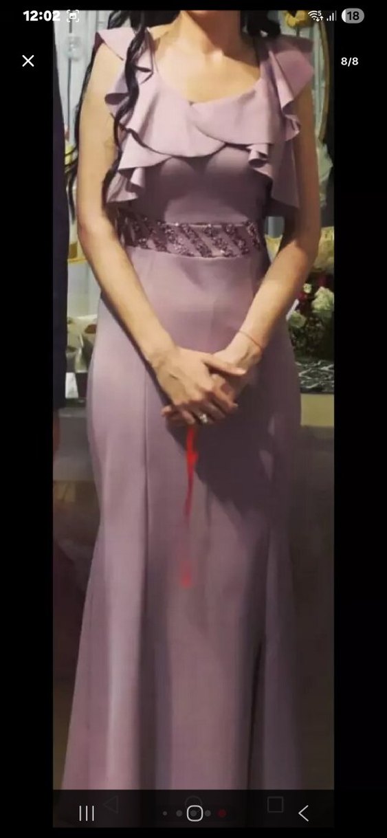Bu uzun, v yaka, kolsuz abiye elbise, parlak pembe renkte drapeli ve vücuda oturan bir tasarıma sahiptir. 1 defa kullandım.
