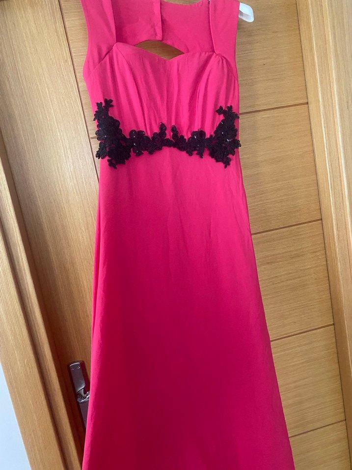 Uzun pembe abiye elbise, straplez yaka ve kolsuz tasarımıyla dikkat çeker. Belinde koyu nakış detayları ve drapeli vintage gotik tarzı bulunur, romantik akşamlar için ideal. İç astarı var 2-3 defa giyildi çok güzel oturuyor vücuda beldeki dantel gibi işlemesi çok hoş duruyor giyince yandan fermuarlı giyilmesi kolay bir kusuru var çektim onu arkasında düğmelerin biri renk düşmüş ama onarılabilir basit bir işlem 38 beden renk biraz farklı ama koyu pembe diyeyim tam bir prenses abiyesi gibi bedeni tam hatırlamıyorum 38 diye hatırlıyorum 36 da olabilir ama 1 yazıyor etikette anlamını bilemedim