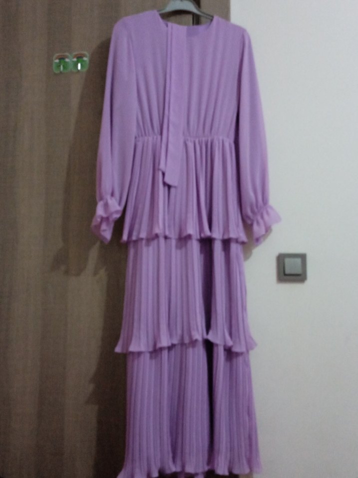 Uzun Pilili Mor Kadın Elbise - Görsel 1
