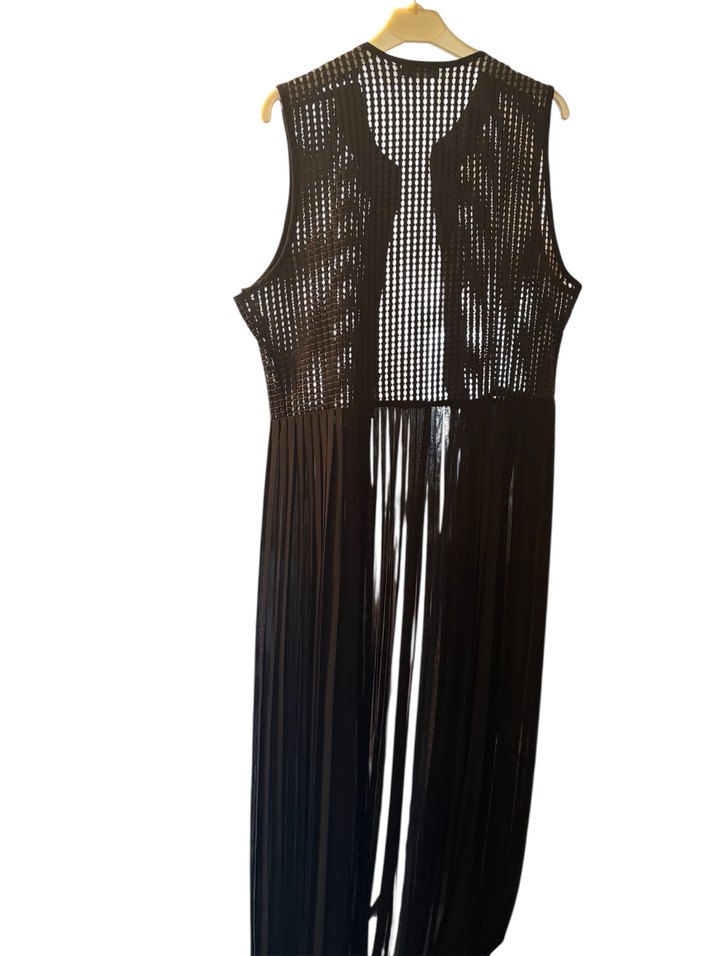 Siyah, kolsuz ve straplez yakalı bu yelek uzun kesim ve gotik tarzda tasarlanmıştır. Fermuarlıdır az giyilmiştir.