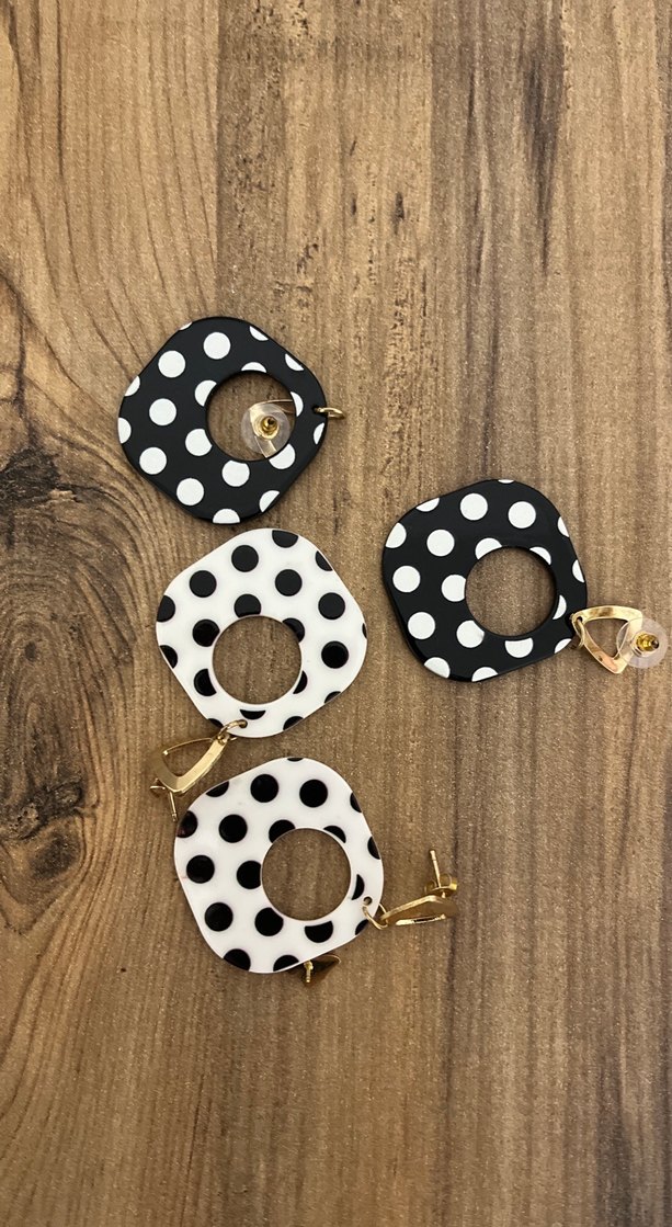 Uzun boyda, beyaz ve siyah puantiyeli desenlere sahip, boncuk detaylı küpeler. Vintage bohem tarzını yansıtır, günlük kullanıma uygundur.