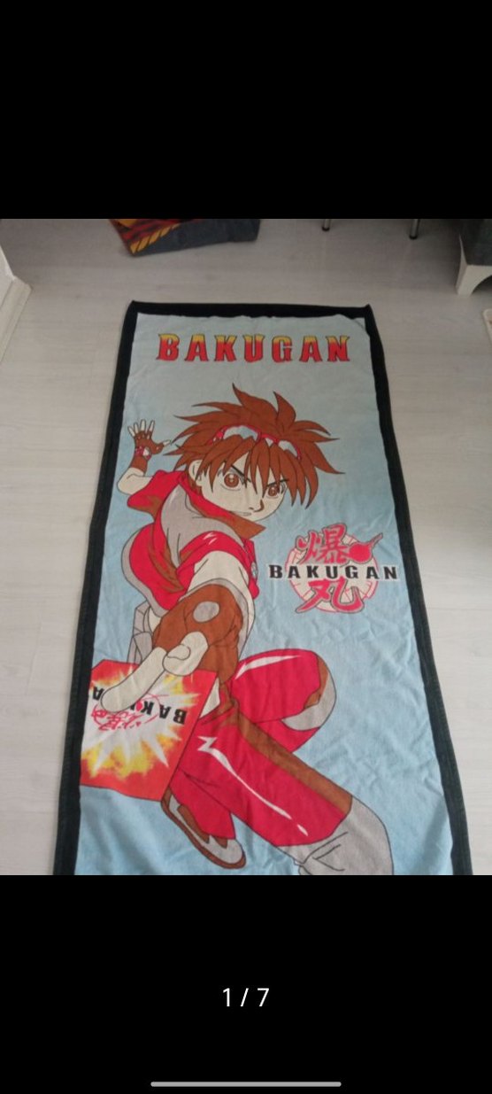 Uzun ve renkli erkek plaj havlusu, Baskılı Bakugan figürü ve drape tarzıyla bohem ve retro bir hava sunar. Spor ve plaj için uygundur. ️