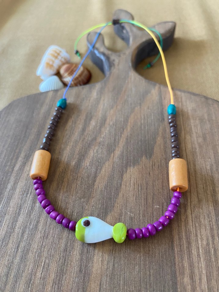 Uzun renkli ipler ve çeşitli boncuklar
