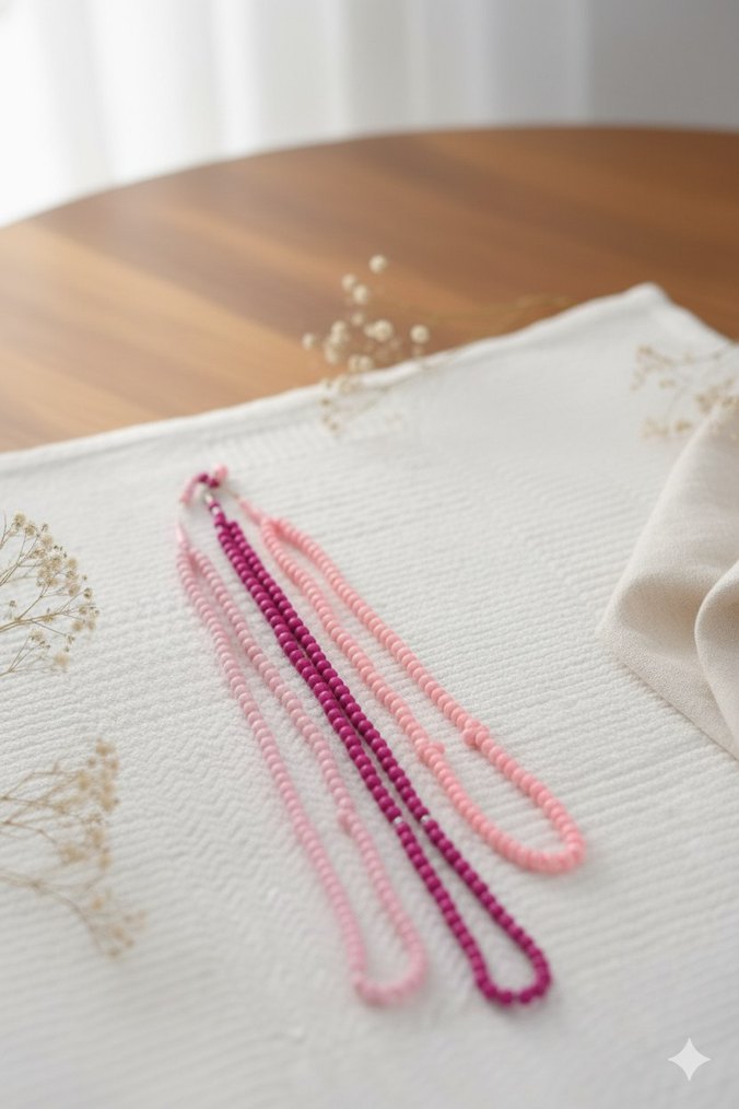 pembe tonlarinda 3 adet tesbih