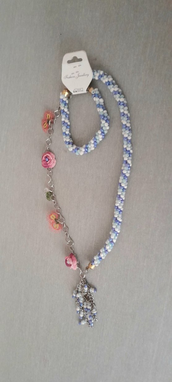 Uzun Renkli Hapishaneişi Yazmalı Kolye+BilekliknTakım