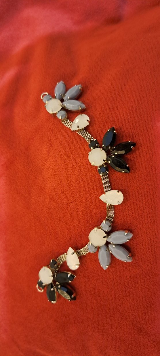 işlemeli çok renkli taşlarla detaylandırılmış zincir kolye, vintage bohem tarzını yansıtıyor. kenarlarindan zincir eklenerek kolye yapilabilir veya bluz gomleklere dikilebilir.Günlük kullanım için uygun.