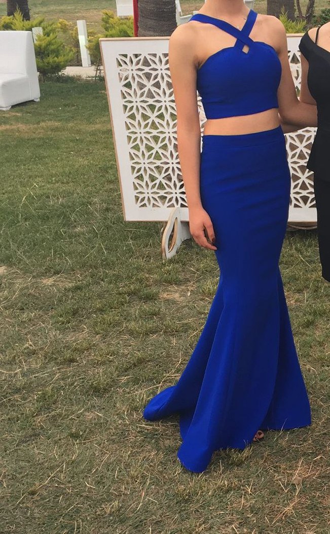 Uzun Saks Mavisi Straplez Mezuniyet Elbisesi