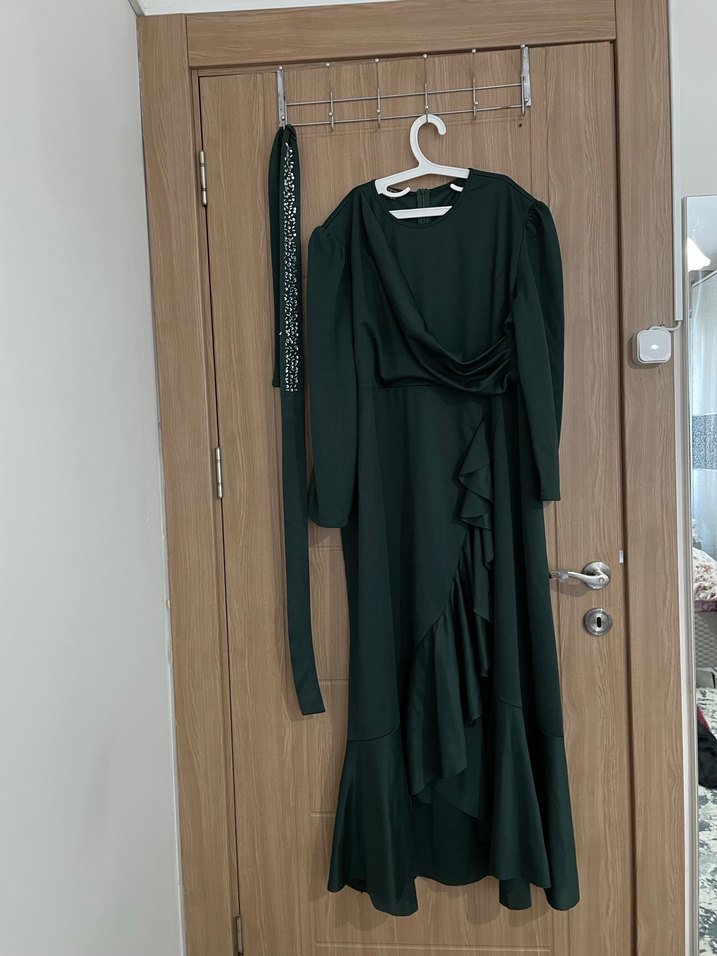 Uzun, Salaş, Drapeli Yeşil Kadın Elbise