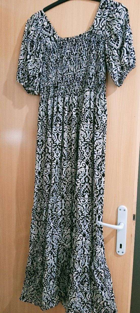 Gri renkte, straplez yaka ve kısa kollu, uzun ve salaş kesim yumuşak sentetik kumaştan yapılmış elbise.gögüs kısmı lastıklı her bedene rahatlılla olır ben XL yim ordan bakarak yola çıkıp alâ bilirsiniz duvarımdaki tüm ürünler 1 kere kullanılmış sıfır ürünlerdir alana şimdiden hayırlı olsun