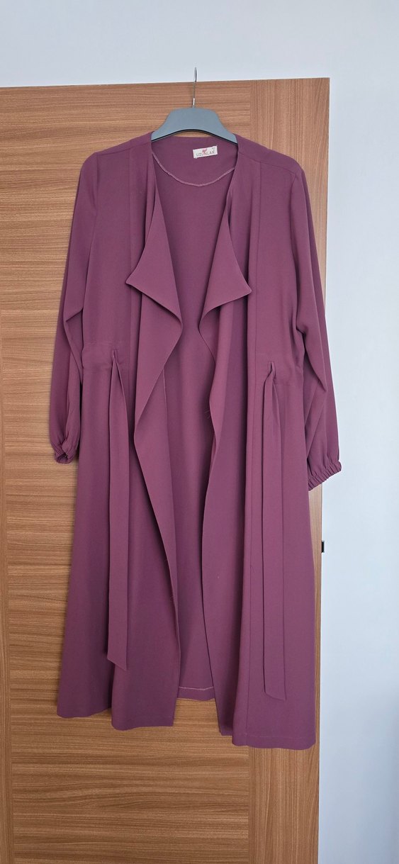 Uzun mürdüm renkli, salaş kesim kadın kap. Dökümlü yakası ve uzun kollu, satenimsi kumaştan yapılmıştır. ürünü nişanlyken aldım ama hiç giyinmedim sıfırdır kaliteli ve güzeldir. Tarzım olmadığı için satıyrm. rengi görselde göründüğü gibidir.