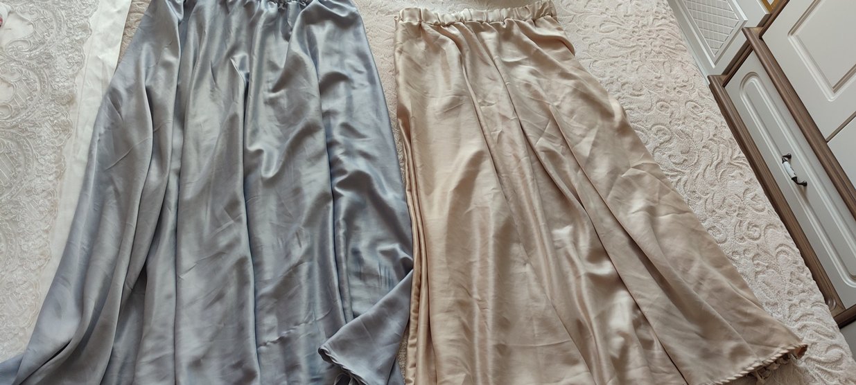 Kadınlar için uzun, salaş kesim ve dökümlü tasarıma sahip, ipeksi kumaştan üretilmiş bej ve gri tonlarında etek. Günlük kullanıma uygun, akıcı ve rahat bir yapıya sahiptir. ikili fiyat