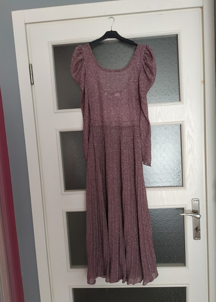 Uzun simli gece elbisesi sırt dekolteli.38 beden hiç giyilmedi etiketi yok .