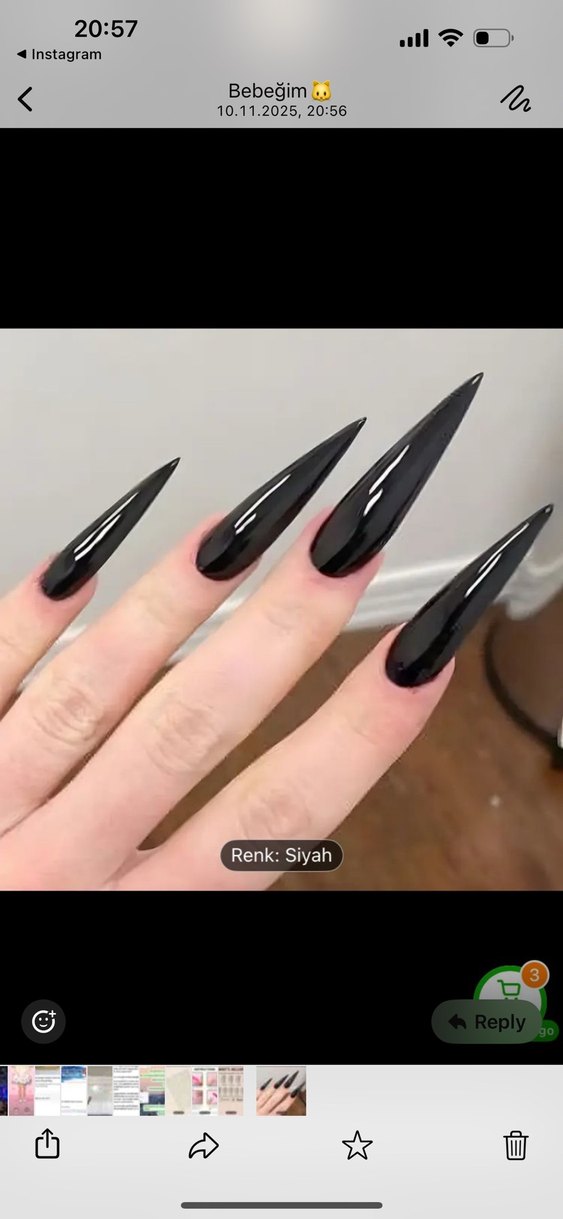 Parlak yüzeye sahip uzun, sivri siyah tırnak süslemeleri, şık ve dramatik bir görünüm sağlar. Yapıştırıcısı ve törpülür birlikte yeni paketindedir