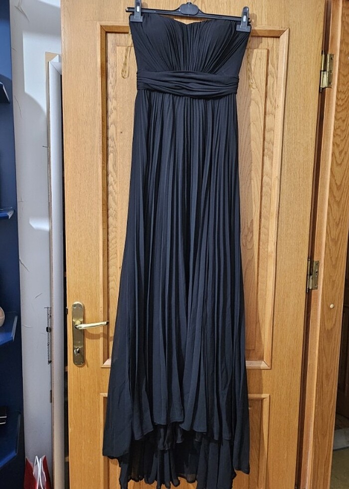 Sadece 1 kere giyilmis. 36 beden, iyi bir durumda ve dugun, davetler de vs giyilebilecek strapless elbise.