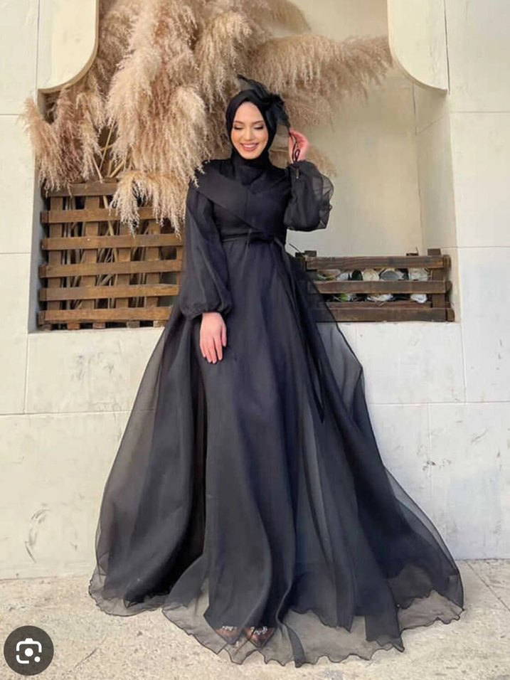 Yüksek yakalı, uzun kollu ve bol kesimli, drapeli uzun siyah abiye elbise. hiç giyilmedi sadece denendi. sıfır 38 beden 162/52 kiloda giyildi rahat bir elbise