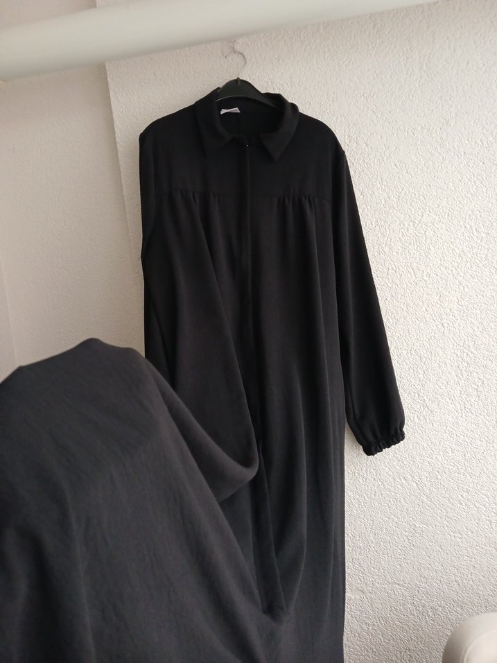 Uzun siyah aerobin ferace yüksek yakalı ve salaş kesimlidir. Uzun kollu, drapeli ve minimalist goth tarzına sahiptir. Yumuşak ve nefes alabilen kumaştan üretilmiştir. resimde gözüktüğü gibi fermuarı sökülmüştür tamir edilebilir az bir sökülme var