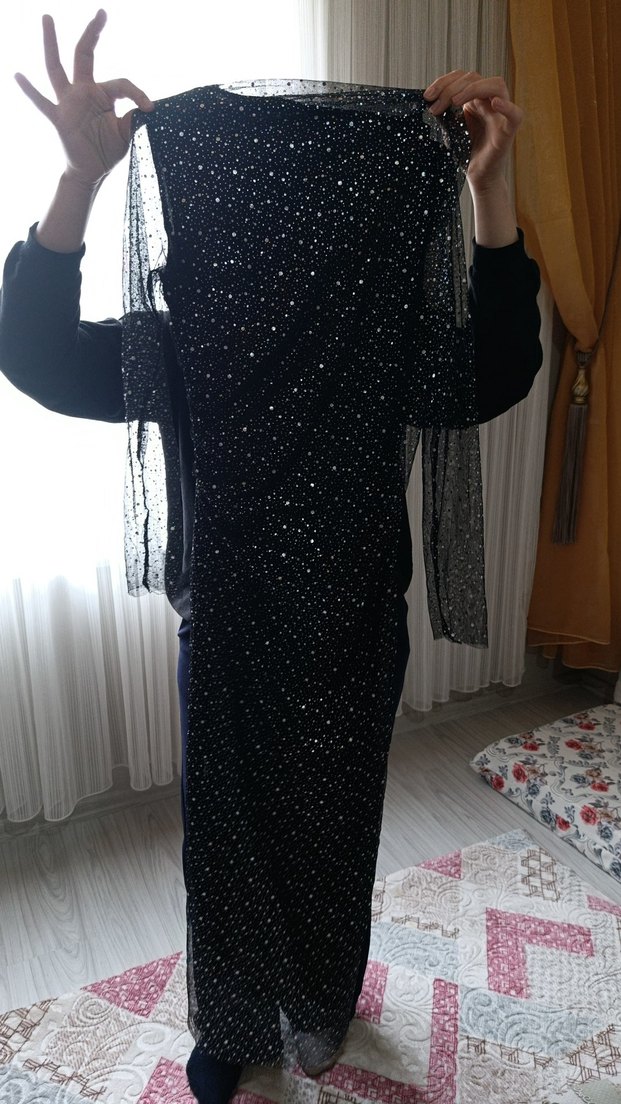 Uzun ve vücuda oturan bu siyah kadın abiye elbise, balıkçı yaka ve uzun kollu olup, zarif parlak detaylarla süslenmiştir. Parti için uygundur. ✨