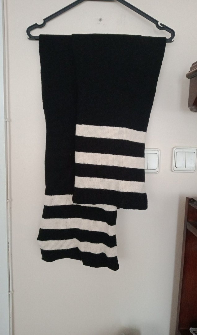 Uzun siyah beyaz çizgili erkek atkısı, sokak modası tarzıyla şık ve rahat bir görünüm sunar.boy:2.32 cm.zevk ve ihtiyaca göre erkek-kadın -genc herkes kullanabilir